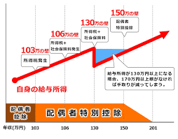 「配偶者特別控除」が受けられるかの境目にも「壁」がある。年収150万円を超えると配偶者特別控除が段階的に減額され、年収201万円を超えると控除が適用されなくなる。